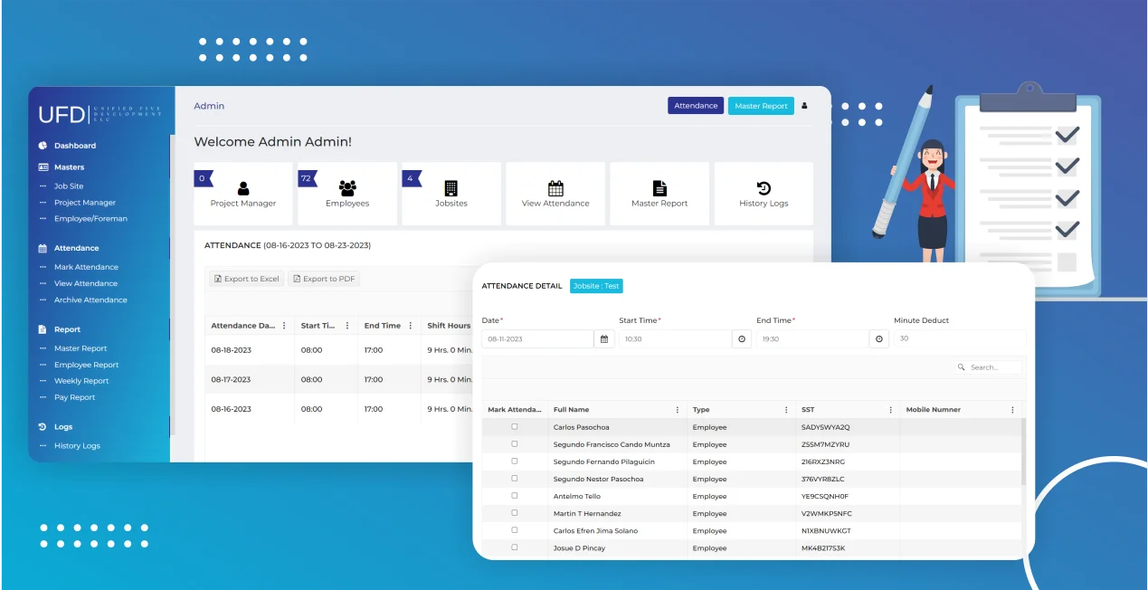 A Software to track daily attendance & generate weekly/monthly wages of the employees working on construction sites.